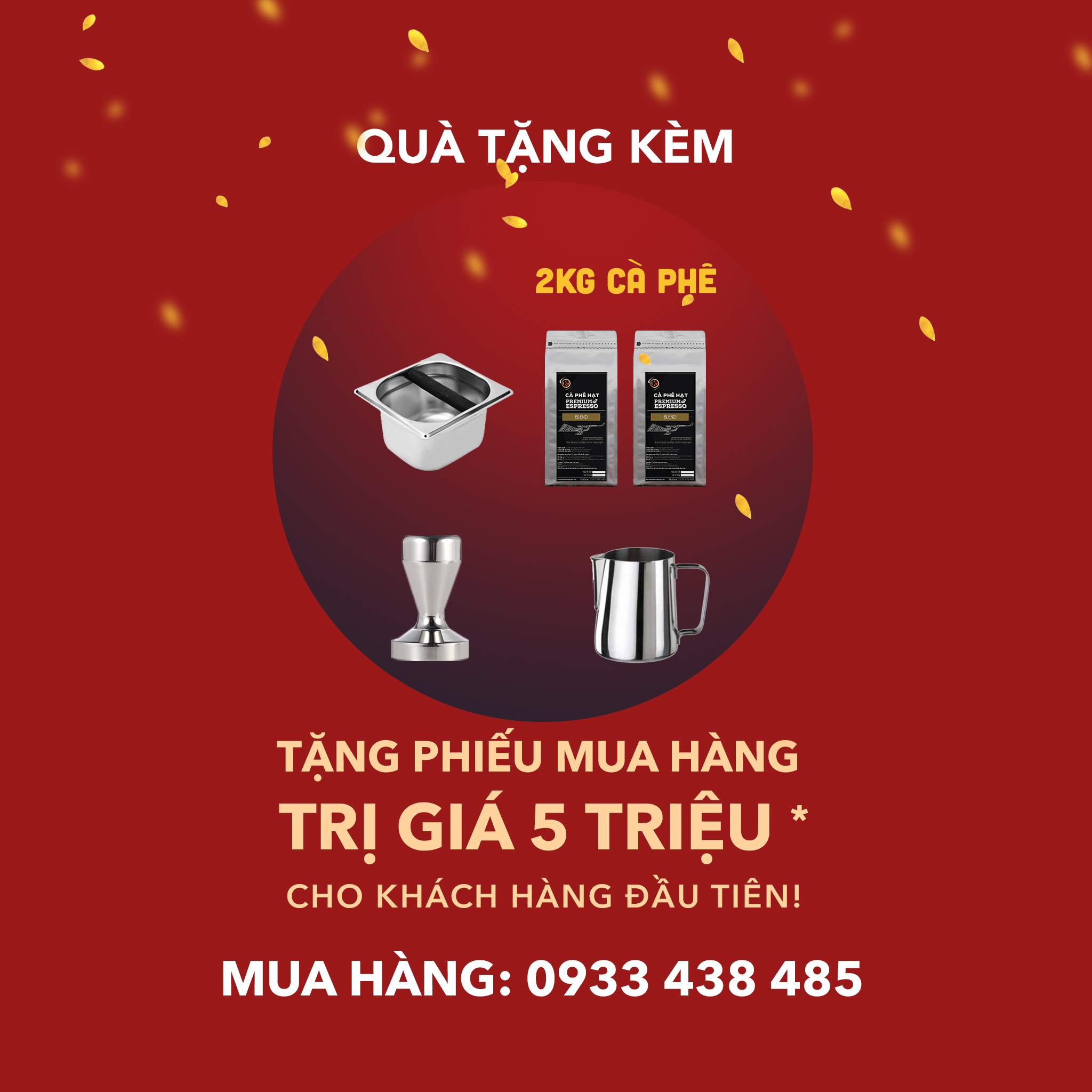 ƯU ĐÃI TẶNG KÈM Knockbox , Tamper, Ca đánh sữa , 2kg cafe hạt + Quà tặng đặc biệt: Phiếu mua hàng trị giá 5 triệu *